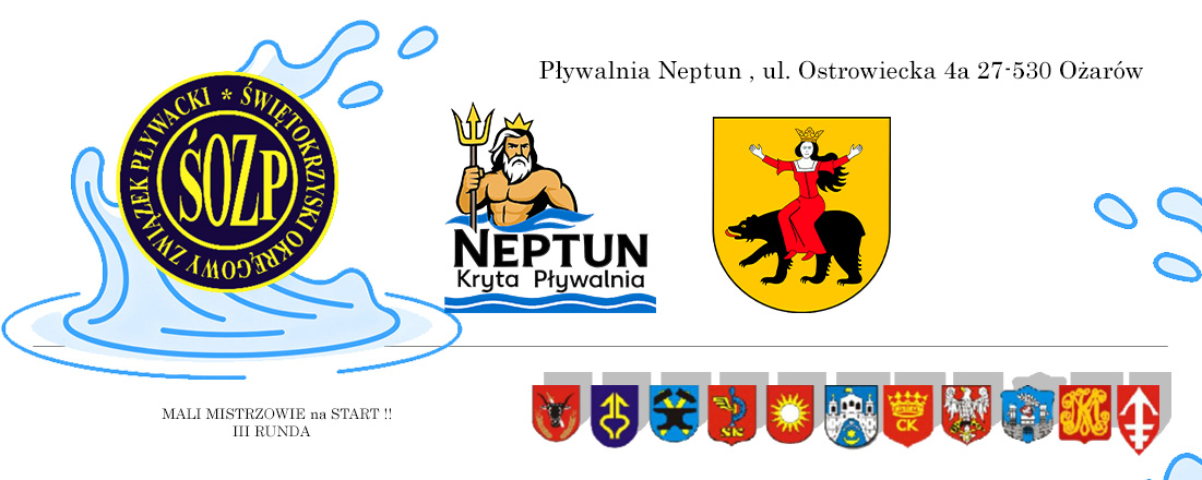| 50m | Serie na czas | 8 - 10 | Lista startowa | Wyniki | 50m | Serie na czas | 8 - 10 | Lista startowa | Wyniki | ||